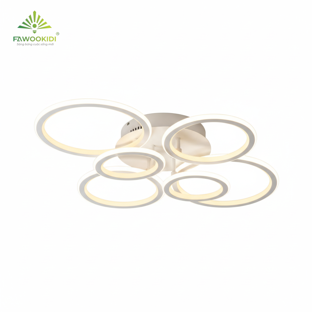 Với công suất 90W và hiệu suất phát quang 95 lm/W, đèn cung cấp lượng ánh sáng mạnh, đồng đều và phủ sáng tốt cho không gian từ 20-35m². Thiết kế 8 vòng LED giúp ánh sáng phân tán đều theo nhiều hướng, hạn chế vùng tối và tạo chiều sâu thị giác. Điều này đặc biệt quan trọng trong phòng khách – nơi cần ánh sáng trung tâm đủ mạnh để làm nổi bật nội thất và tạo cảm giác rộng rãi.
